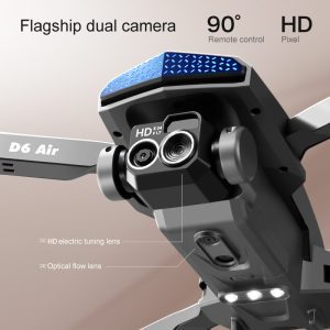 De D16Pro is een veelzijdige drone die dynamische esthetiek combineert met geavanceerde functionaliteit. Hij heeft een opvouwbare, lichtgewicht behuizing met opvallende, coole verlichting voor betere zichtbaarheid. Het vlaggenschip dual-camerasysteem, inclusief een aan de onderkant gemonteerde optische flow-lens, biedt veelzijdige opnamehoeken en elektrische aanpassing. Het geïntegreerde vijfvoudige obstakelvermijdingssysteem en het nauwkeurige optische flow-hoveringssysteem zorgen voor een stabiele en veilige vlucht in verschillende omgevingen. Hij is ontworpen voor langdurig gebruik en wordt aangedreven door een modulaire batterij, waardoor hij een betrouwbare en visueel opvallende keuze is voor zowel recreatief vliegen als creatieve luchtfotografie.