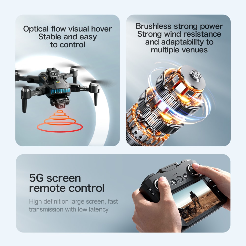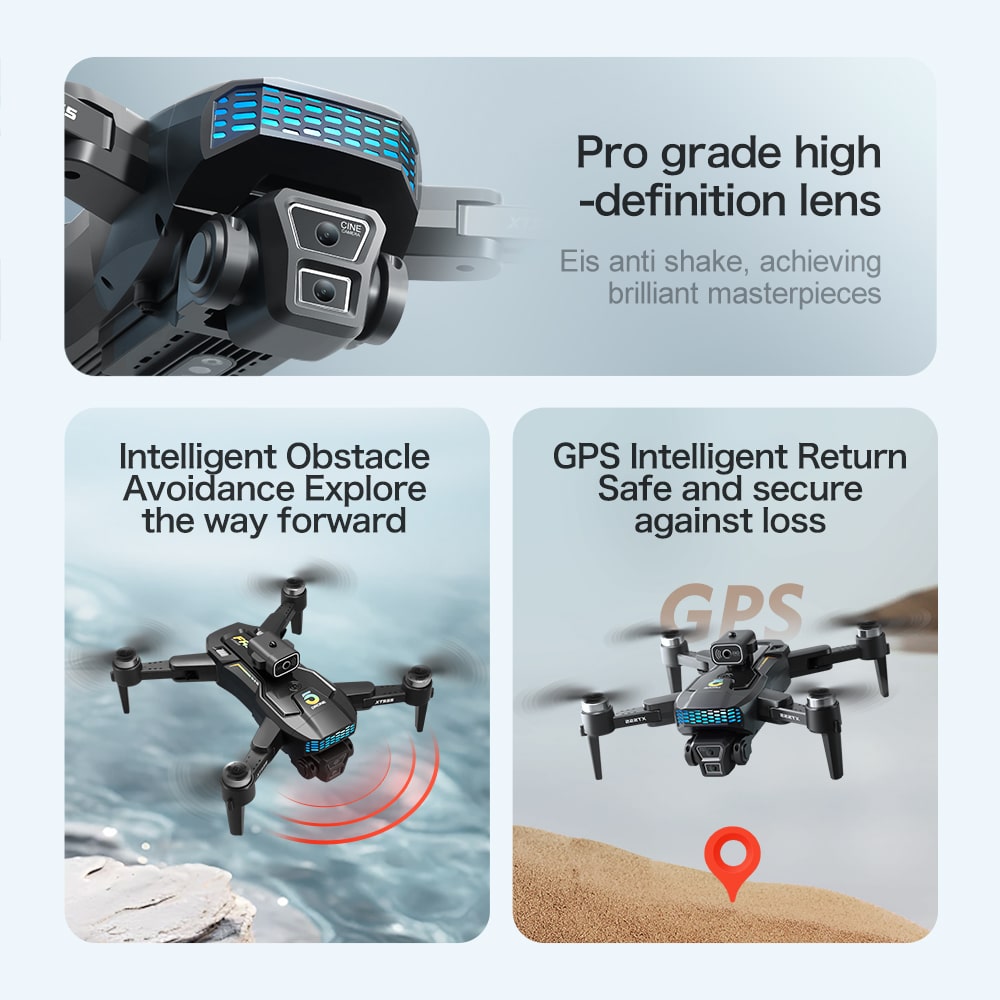 Deze middelgrote opvouwbare drone integreert 5G- en wifi-transmissie voor professionele luchtfotografie. Hij beschikt over een dubbel camerasysteem met een groothoeklens aan de voorkant en een optische flowcamera aan de onderkant voor nauwkeurige positionering, beide gestabiliseerd door een servo-gimbal en EIS. De afstandsbediening heeft een groot 4,3-inch display voor realtime HD-video. Met GPS maakt hij nauwkeurige terugkeerfuncties met één druk op de knop mogelijk. Een 2000 mAh-batterij zorgt voor een vliegtijd van ongeveer 20 minuten. Slimme functies zijn onder meer waypointplanning, follow-me-modus en gebarenbediening. Met name de optische obstakelvermijdingssensor zorgt voor veiligheid, terwijl het lichtgewicht ontwerp van 192 g ervoor zorgt dat hij vrijgesteld is van veel registratievereisten, waardoor hij zowel krachtig als draagbaar is.