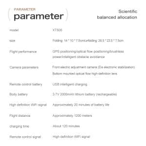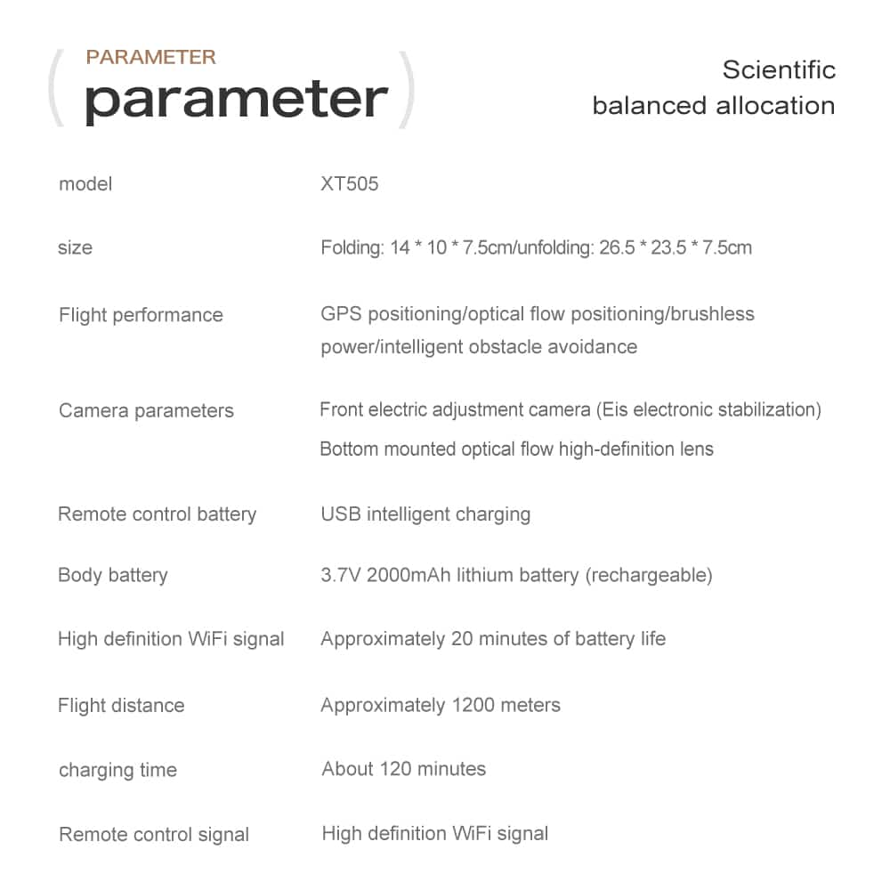 De XT505 is een GPS-drone met tal van functies die professionele beeldvorming naadloos combineert met een fascinerende visuele flair. Hij is ontworpen voor stabiele vluchten tot 1,2 kilometer en maakt gebruik van geïntegreerde GPS en optische flow-positionering voor nauwkeurige navigatie en betrouwbaar zweven. De 4K HD-camera, uitgerust met elektrische aanpassing aan de voorkant en EIS-stabilisatie, legt vloeiende beelden van hoge kwaliteit vast, geholpen door een optische flow-lens aan de onderkant. Intelligente obstakelvermijding en uitgebreide automatische terugkeerfuncties – geactiveerd bij signaalverlies, een lage batterijspanning of het overschrijden van afstandslimieten – zorgen voor operationele veiligheid. Verbeterd met dynamische, coole verlichting biedt hij zowel robuuste prestaties als een opvallende aanwezigheid voor luchtfotografie en nachtvluchten.
