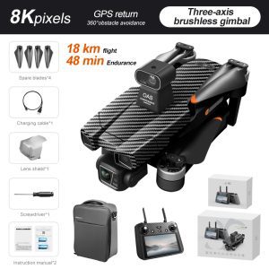 - 4K verstelbare camera (drieassige mechanische stabilisatie gimbal + elektronische stabilisatie en anti-trilling + laser obstakelvermijding)